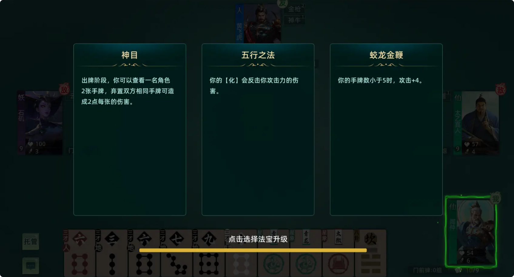 Every character in "Fengshen Yi" possesses 3 Magical Artifacts, each with distinct effects. Each Magical Artifact can be upgraded to a maximum of Level 2. At the start of the game, each player can choose one Magical Artifact to upgrade. Later, during the card game, players can perform additional upgrades when triggering the Magical Artifact upgrade mechanism.