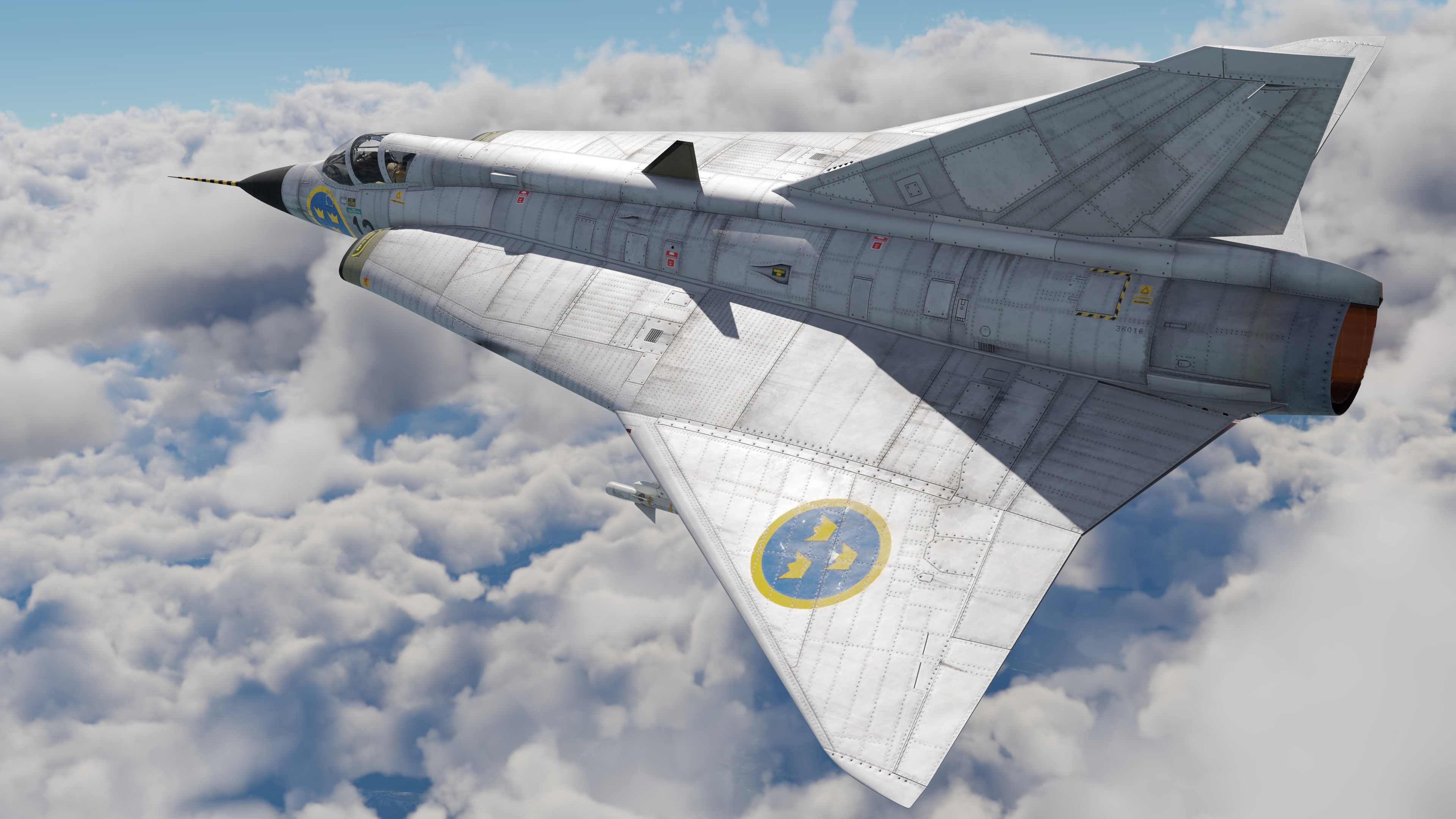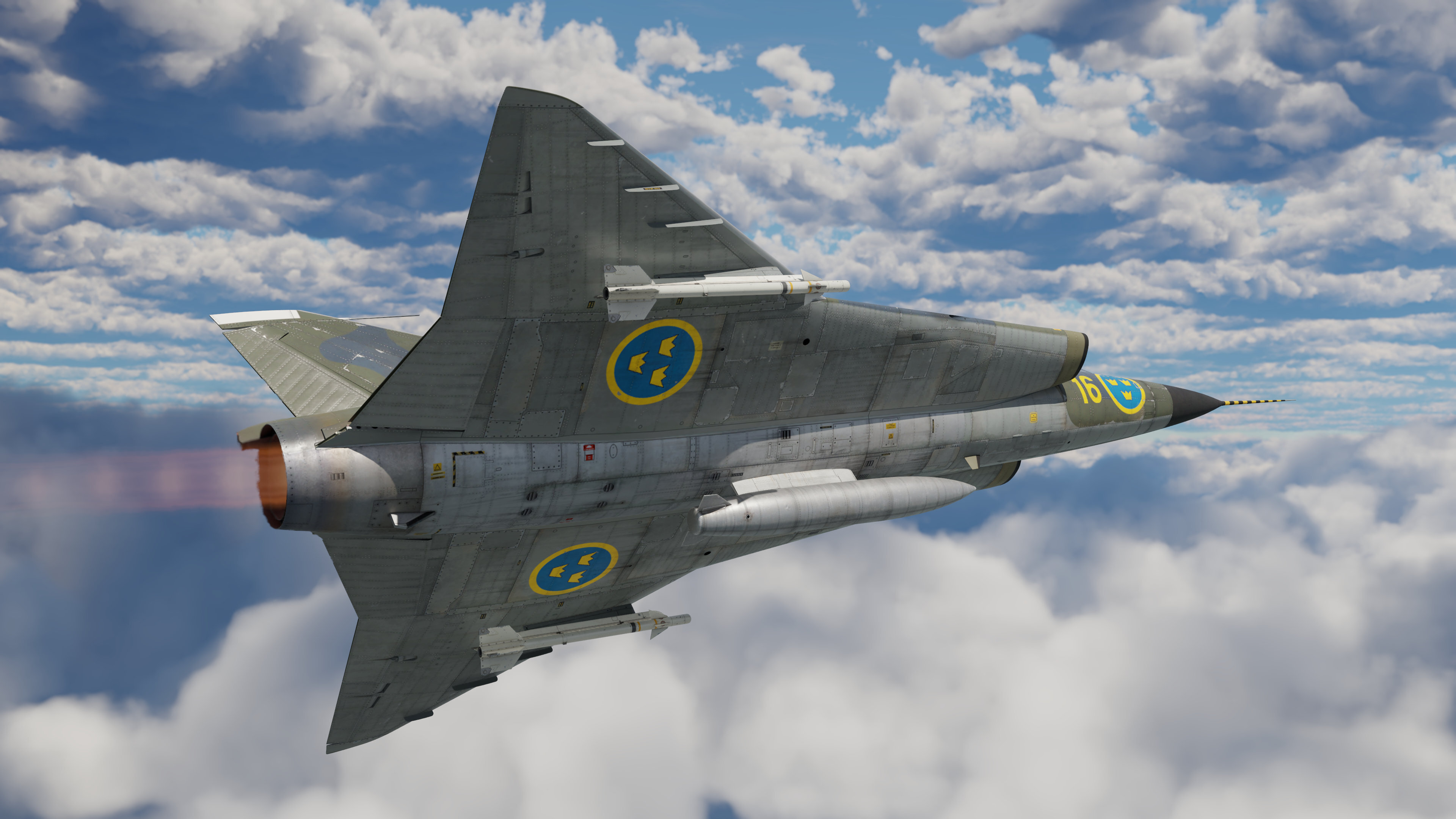 Although the J35A Draken was designed as an interceptor, it has excellent flight characteristics, making it also a very capable fighter. The J35A accelerates and climbs quickly, reaching incredible speeds while maintaining excellent control. Because it’s an early version of the aircraft, it lacks countermeasures, so pilots must be prepared to counter enemy missiles the old fashioned way: on their own.
