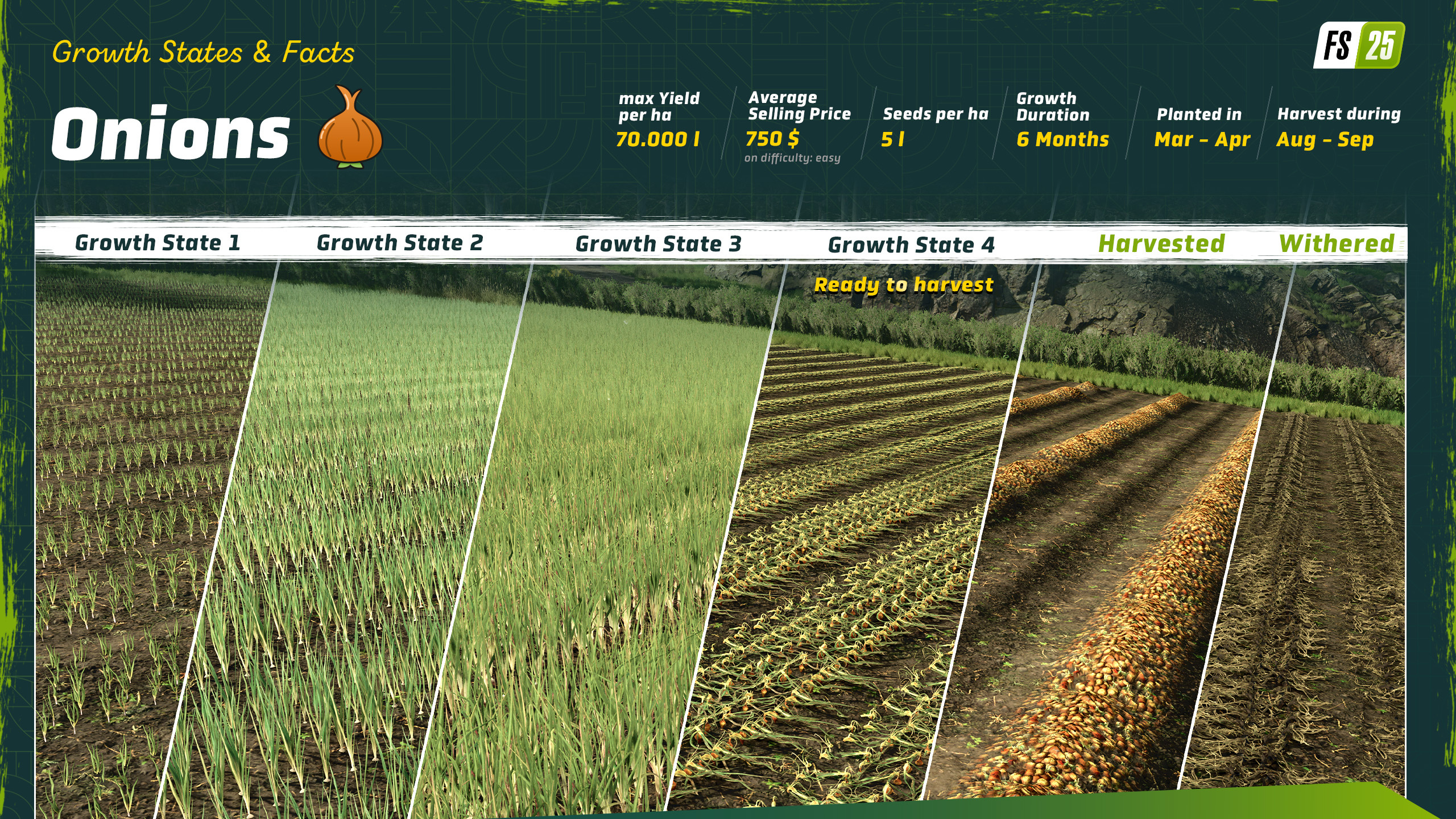 You're not the only living thing to put down roots in Kinlaig. With the Highlands Fishing expansion, we also introduce another root crop: onions. Starting November 4th, we provide you with specialized machines and new production chains to cultivate and process this vegetable.