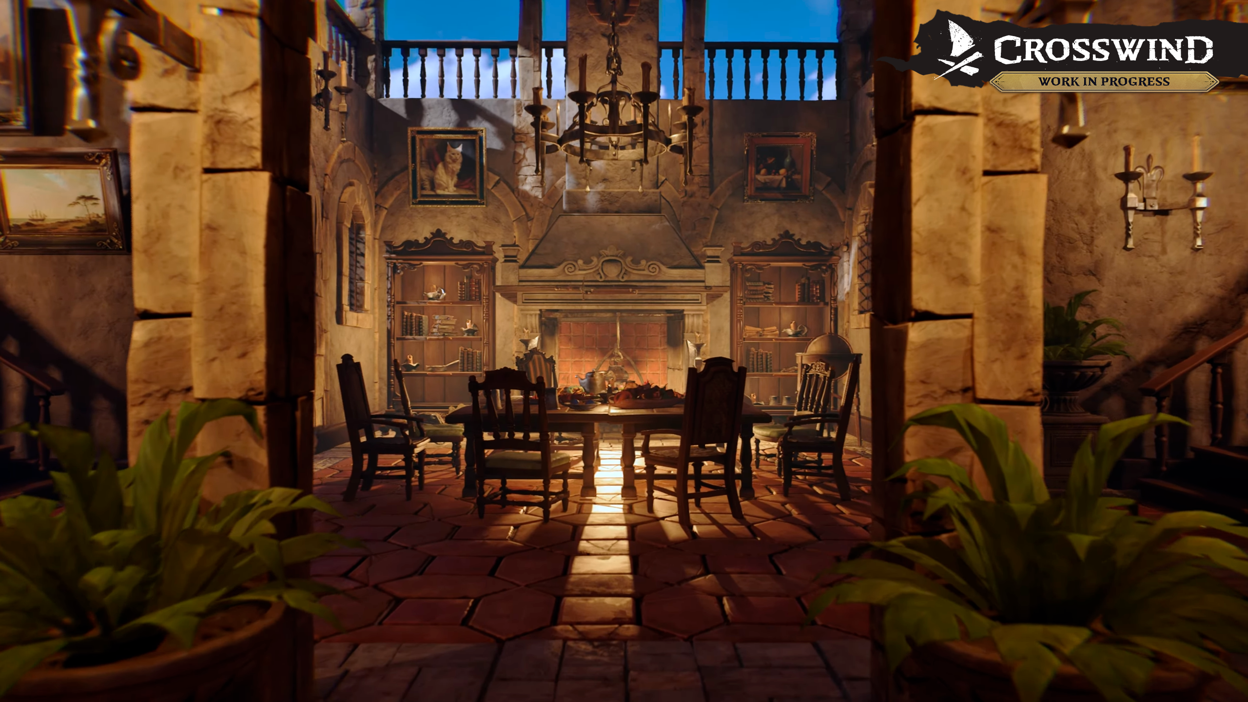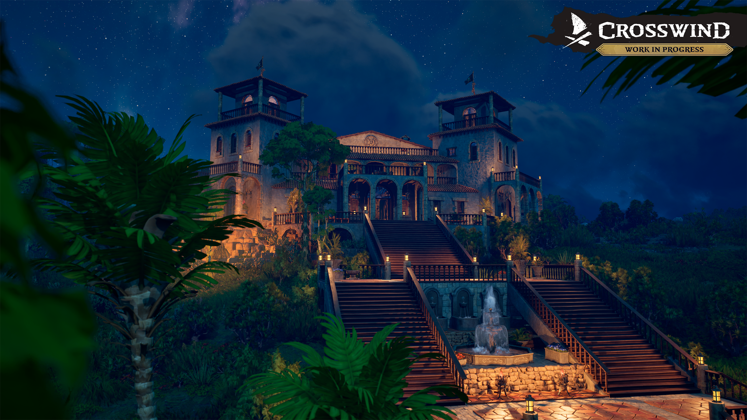 Old-World estate building set & interiors. Inspired by Spanish and British mansions of the era, it’s been reimagined to fit Crosswind’s tone. It’s not a strict reenactment, but it’s close in spirit. And yes, the mansion you see was built entirely with in-game systems and tools.