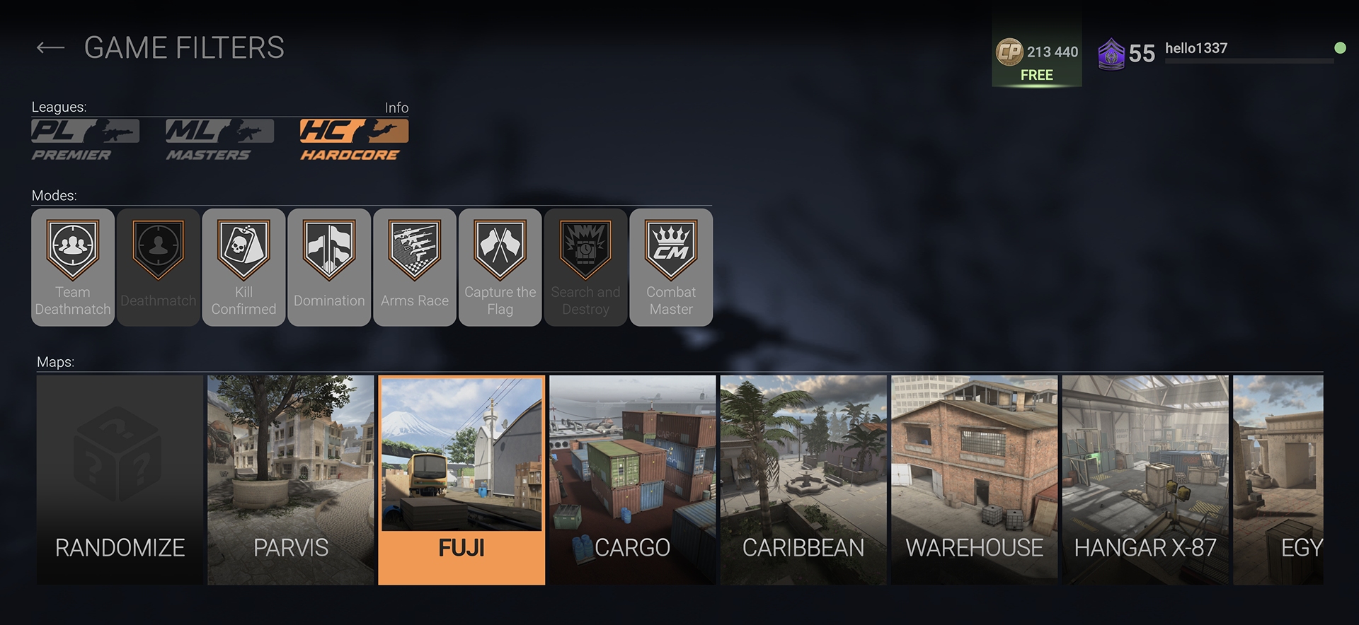 - New Game Filters: Choose your map -- master Fuji nonstop!