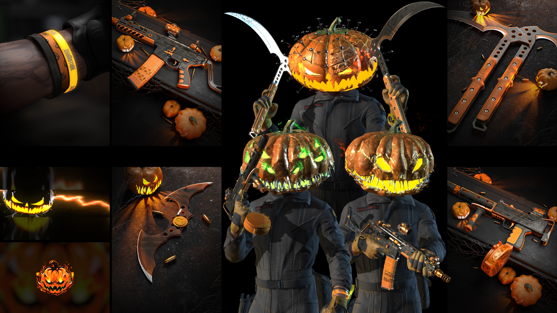 Call the Three Pumpkin Brothers! Get ready to terrorize with Aberration, take down enemies with the eerie power of John O. Lantern, and ensure they get the point with Pincushion. Grab the bundle and bring the nightmare to life!