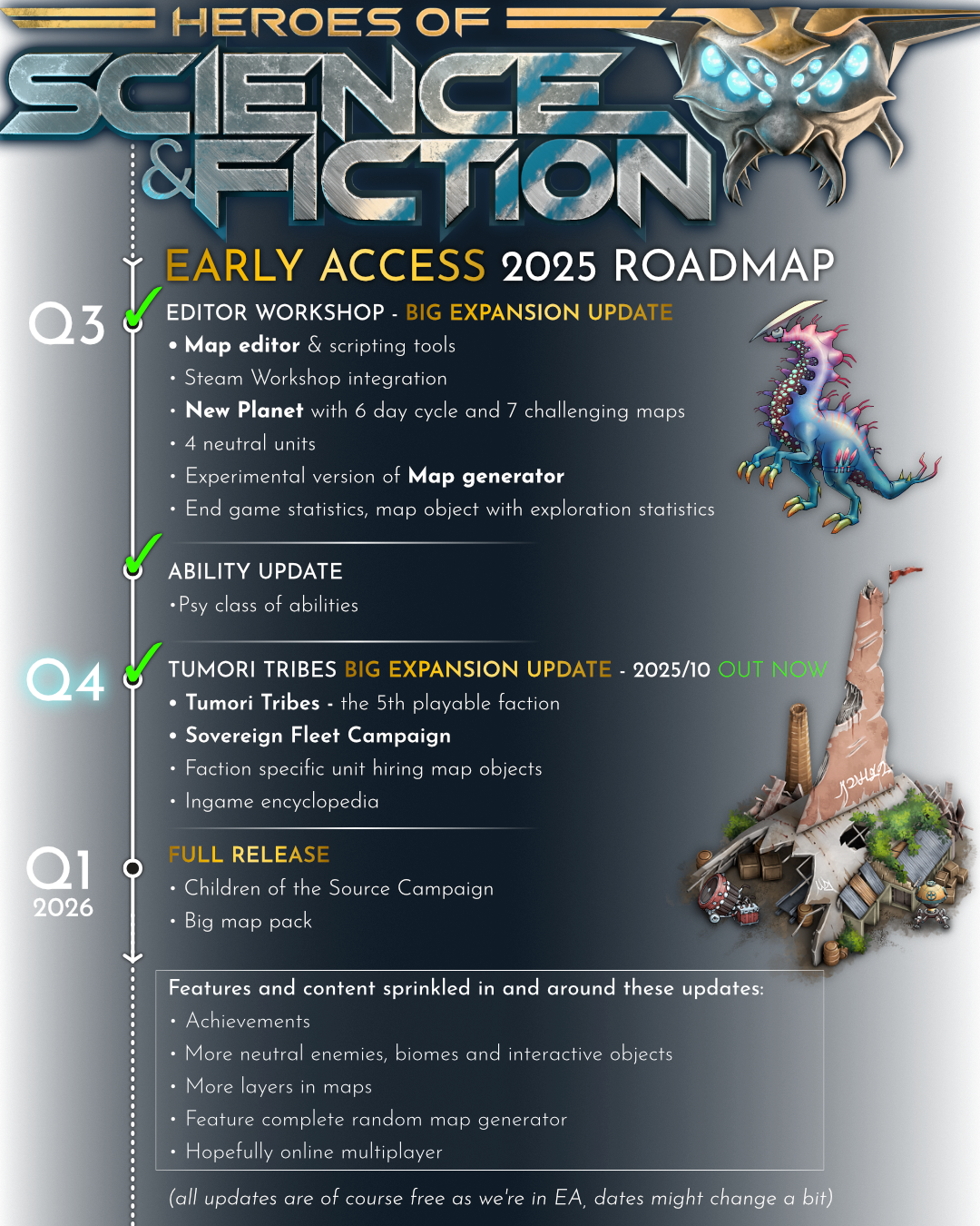 We will be running BETA weekends where, content will automatically unlock in all builds of the game for that specific weekend. This content will include features that are mentioned in the Available at FULL launch list below. First one planned: 14-17th November 2025*