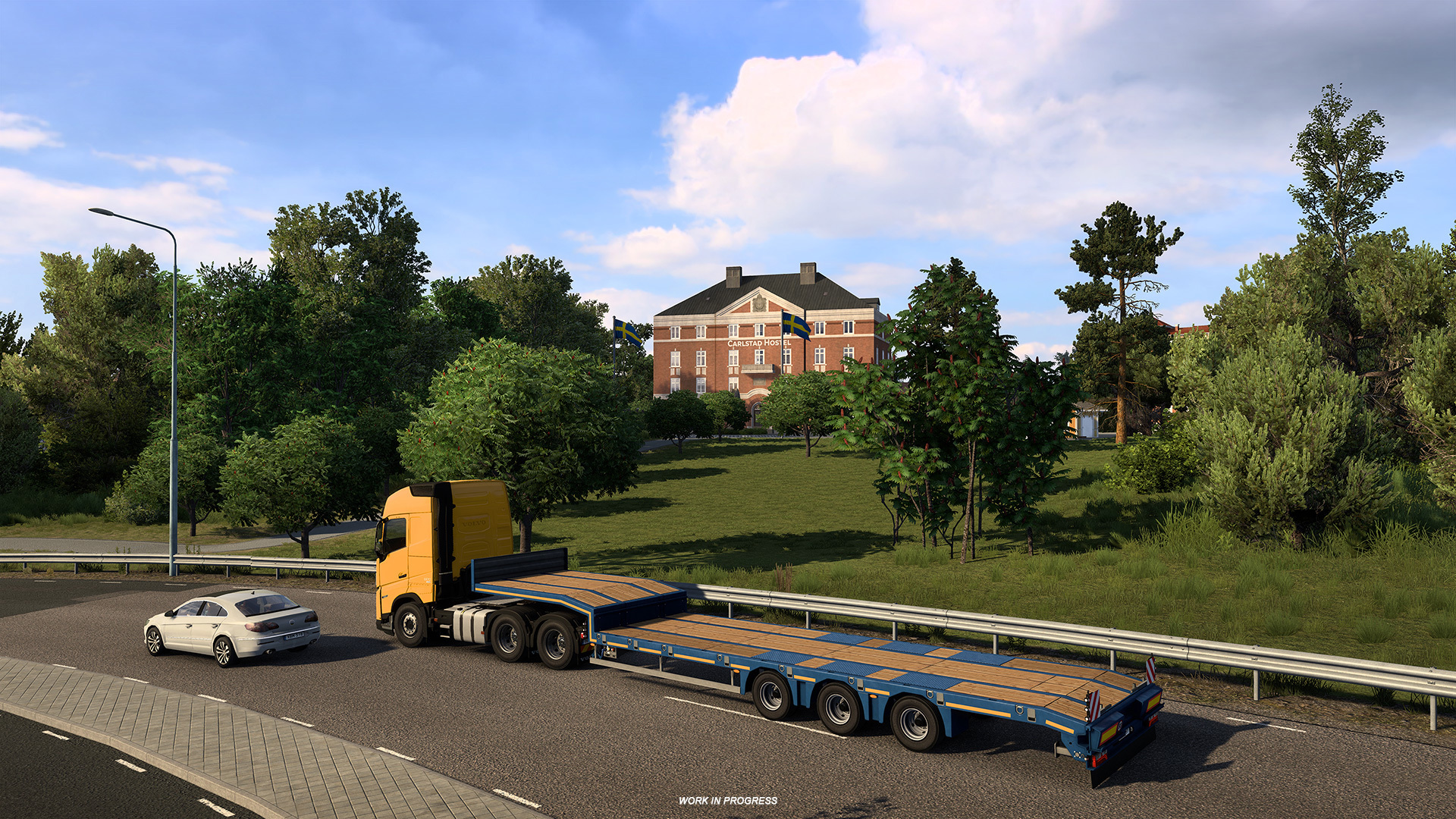 In addition to these sights, there are a number of depots and service locations across the area, from fuel stations and farms to logistics centers, and more. Truckers can also look forward to a local garage where they can expand their operations in this part of Sweden. Our ETS2 Map Designer, Lukas, who worked on Karlstad, shared a few words about his experience: