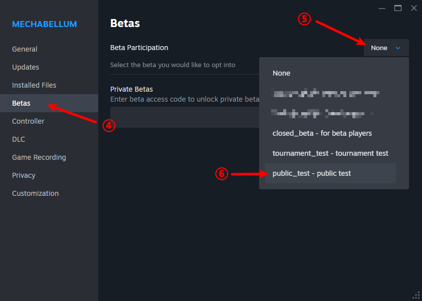 In the pop-up Properties window, select the Betas tab, and then choose public_test from the drop-down menu of Beta Participation.