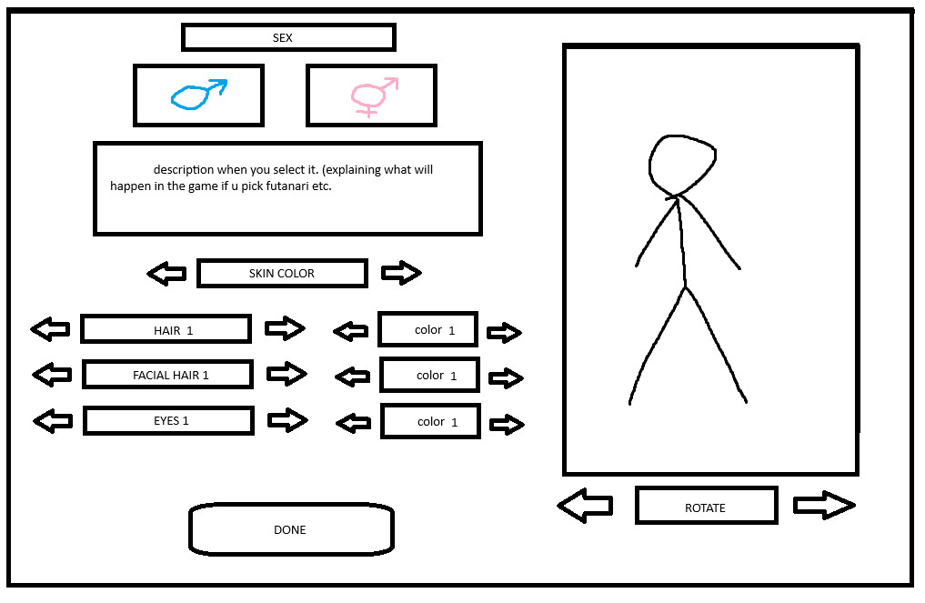 Next up, my new coder and I are tackling the character creation system. Check out this awesome sketch I whipped up: