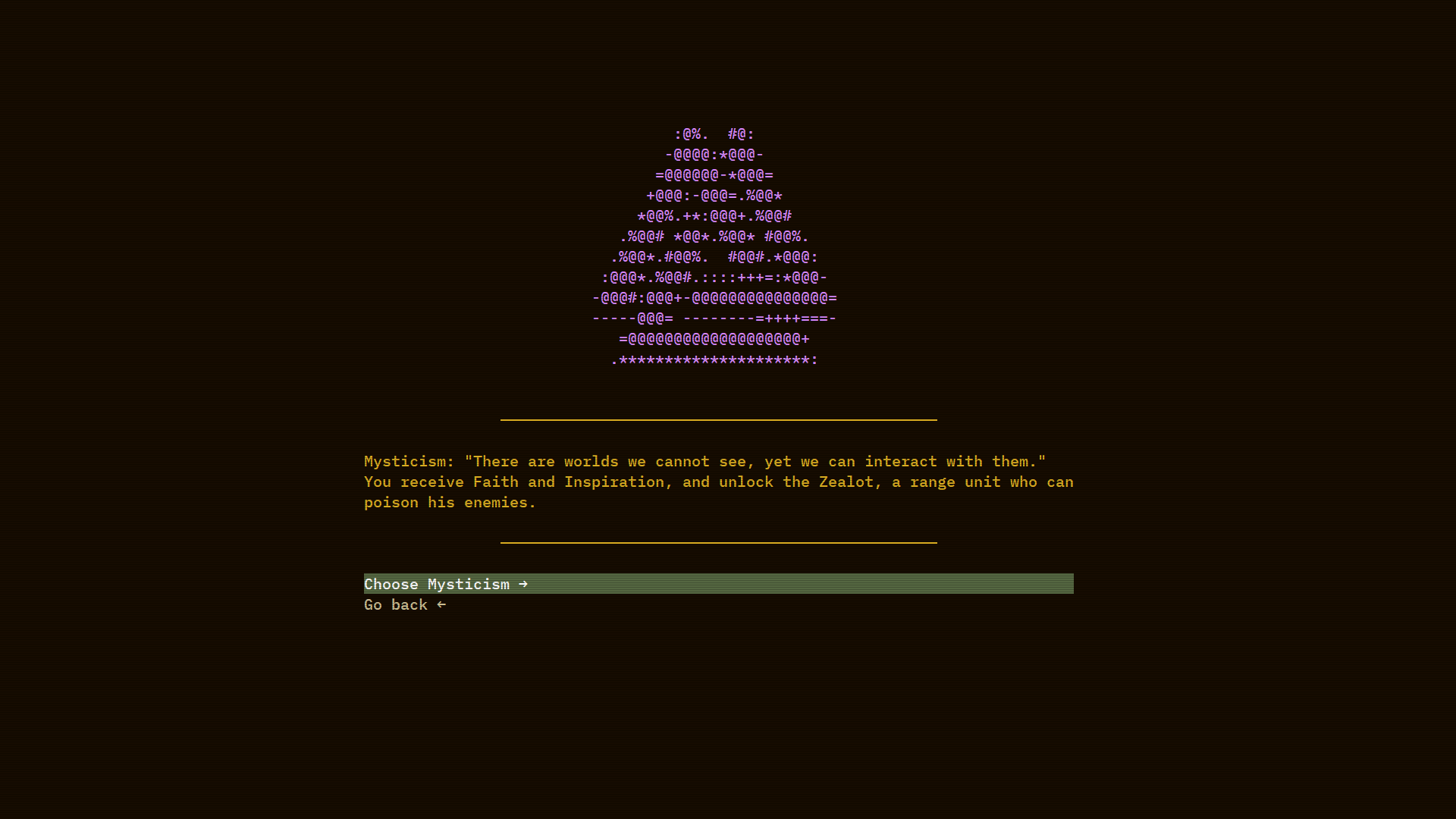 Quick summary of the doctrine you've chosen, the resources you get, and the disciple you unlock.