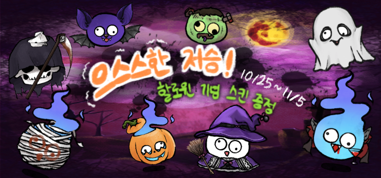 Log in during the Halloween Festival (10/25 ~ 11/5) to receive one random costume from the 8-piece set!