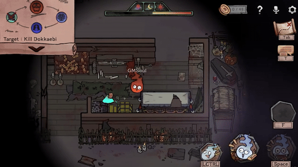 Dead players can set Ghost Traps to startle the living. Traps recharge upon death or each Twilight (3 charges).
