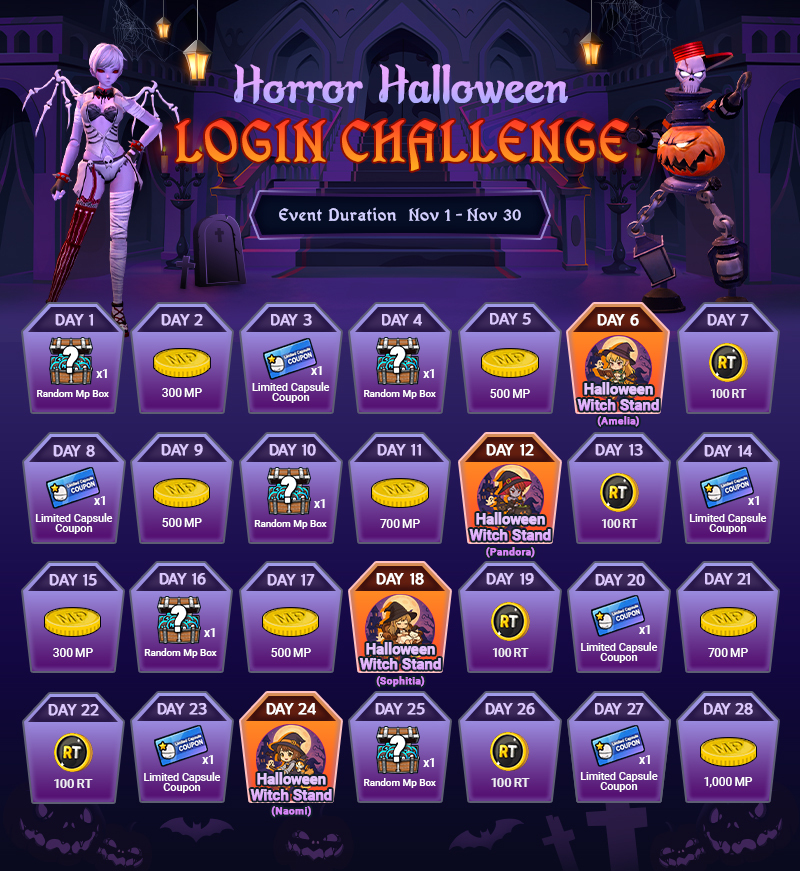 - Event Duration : After the maintenance on Oct 28 ~ Before the maintenance on Nov 25
