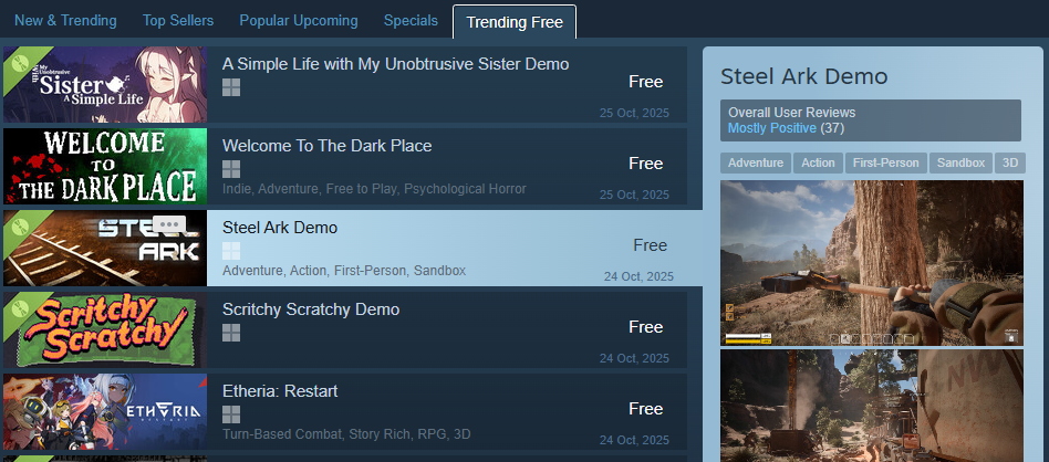 With zero marketing, just pure community support, this demo has already climbed into the Top 3 Trending Free Demos!
