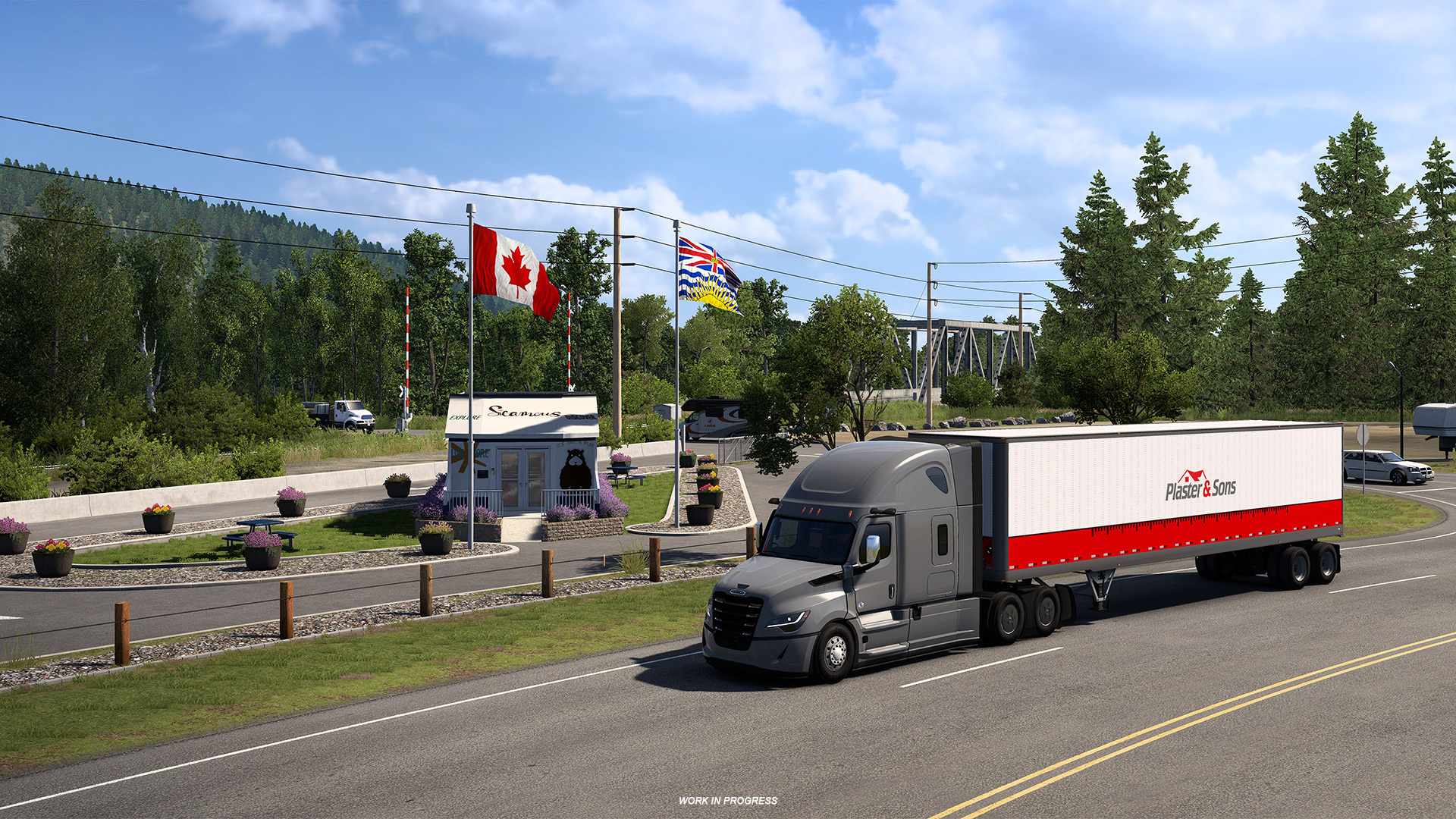 We’re thrilled to share some truly exciting news with you today: American Truck Simulator is officially heading beyond the borders of the United States for the very first time! As some of you correctly guessed from Annie’s painting, we’re working on the British Columbia DLC, bringing the beauty and spirit of western Canada to life in American Truck Simulator.