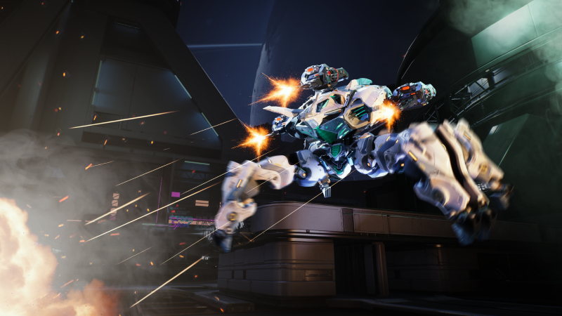 Twin autocannons thunder in unison, cutting through armor with continuous mid-range bursts. The Hefty weapon turns pressure into precision—ideal for holding lanes and breaking enemy momentum.