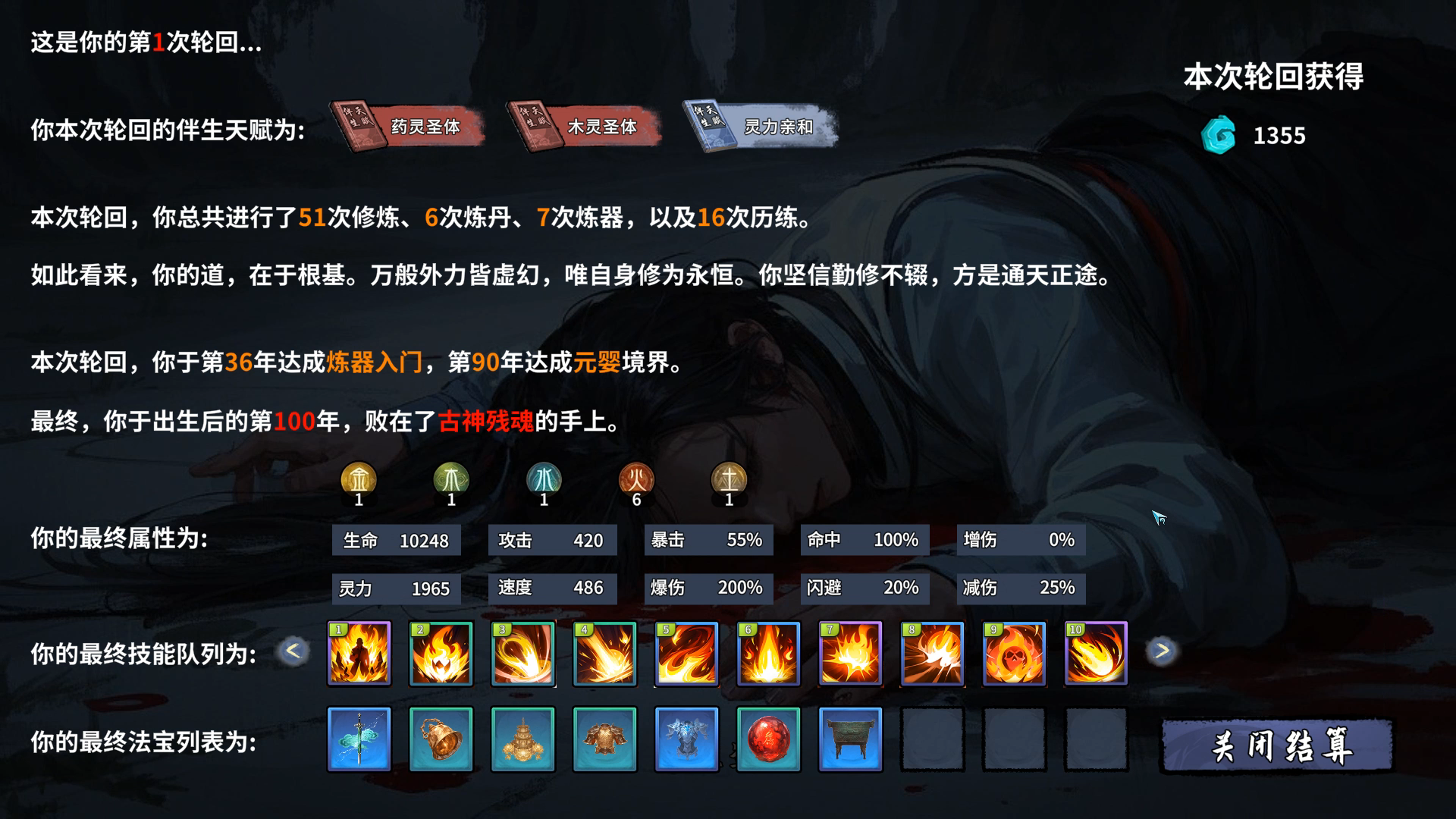 如果通关或者身死道消还会有结算界面,方便大家汇总经验到下一个轮回,游戏正式版还有更多有趣的内容等待大家体验,欢迎11月28日前往Steam购买体验。