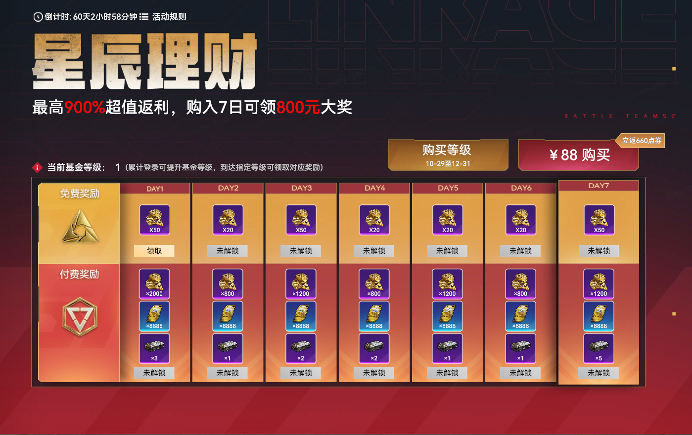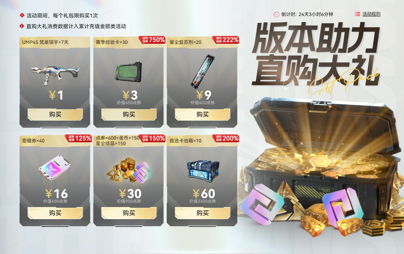 ●赛季天梯活跃奖励增加,并每周额外新增活跃奖励。每周进行一定的排位场次,即可获得包括【深空密钥箱】【深空解密卡】等超值奖励