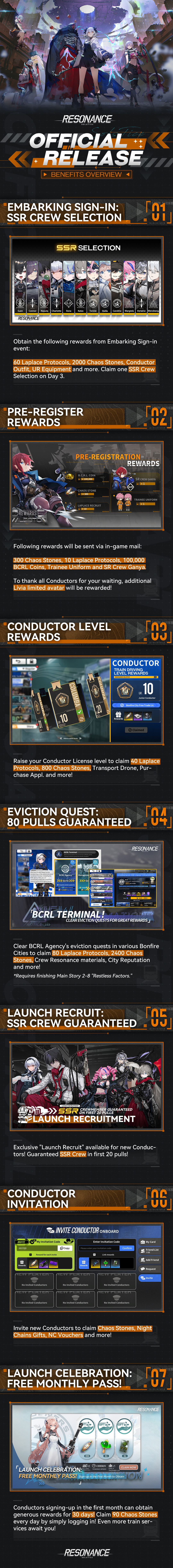 ✦ Pre-Registration Rewards: Pre-register and get Laplace Protocol ×10, Limited Crew, and Conductor Outfit.