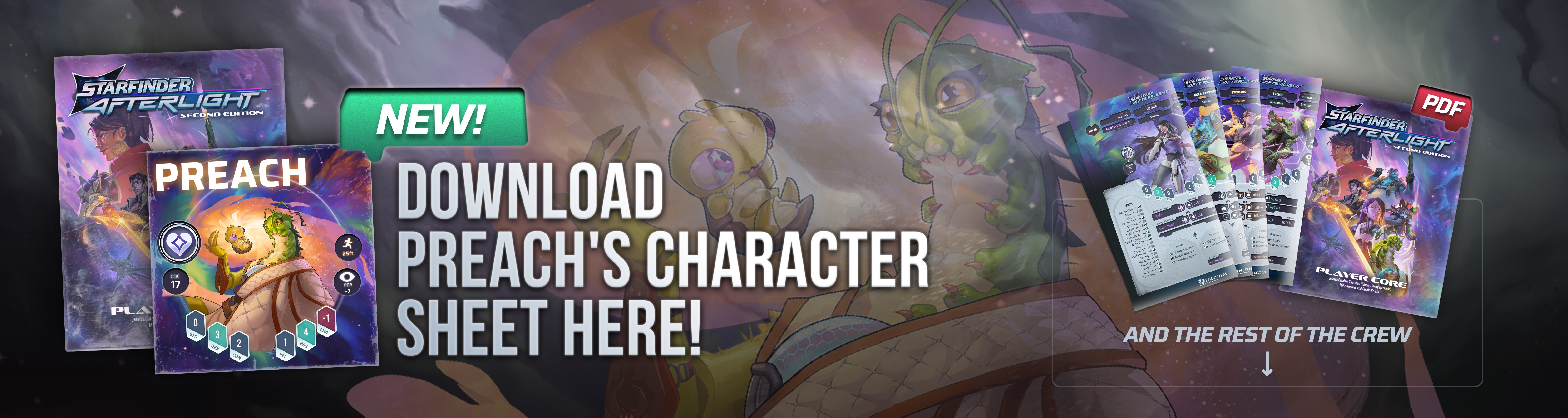 By now, please behold the official reveal of an additional member of the Starfinder: Afterlight crew, it’s Preach.