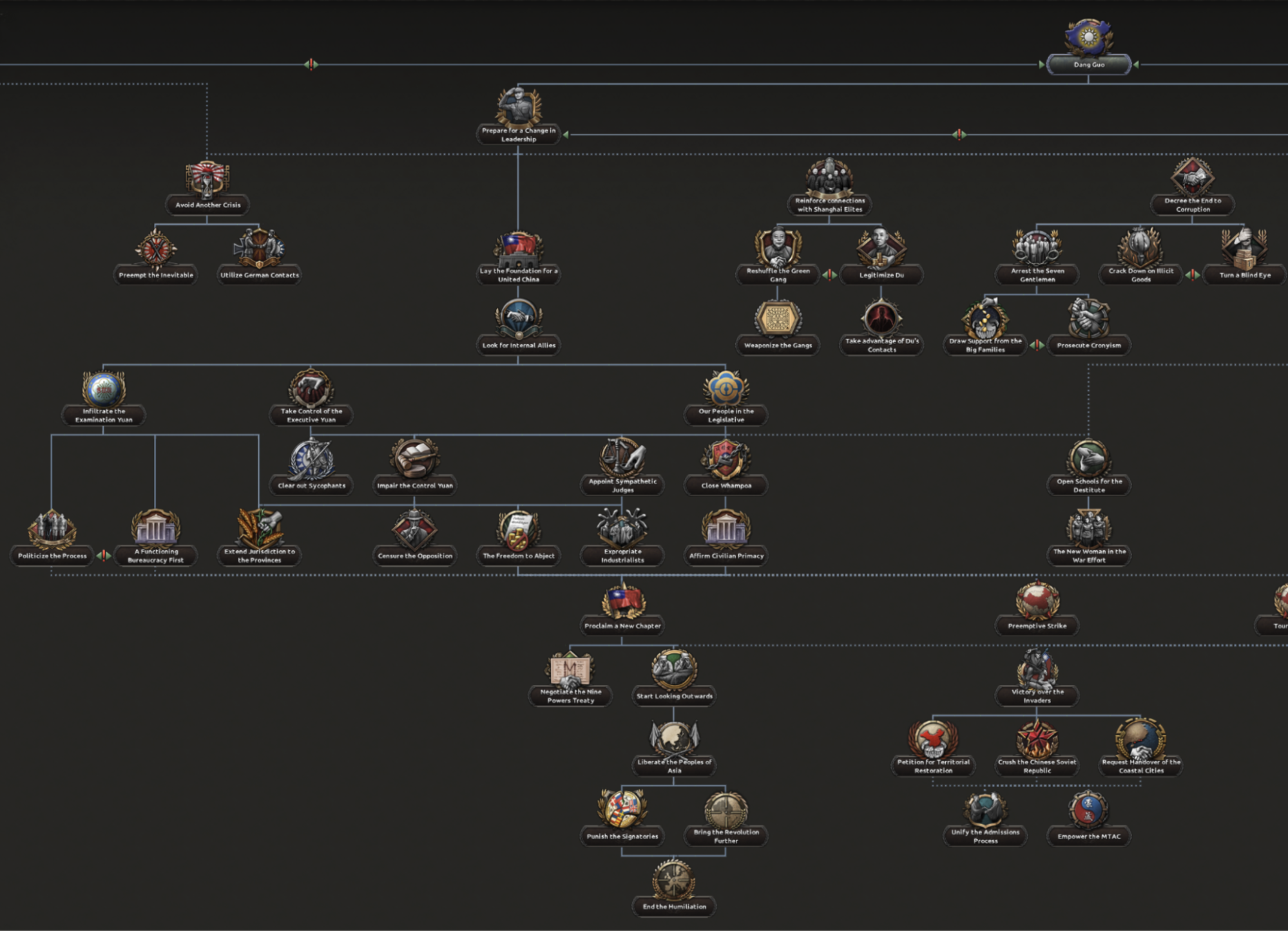Unlike Chiang, Wang wasn’t militarily trained and more of a politician so we’ve taken to this difference to make this path feel different. In this path you will get rid of Chiang and start solidifying your power through taking over the central government institutions, known as the Yuans.