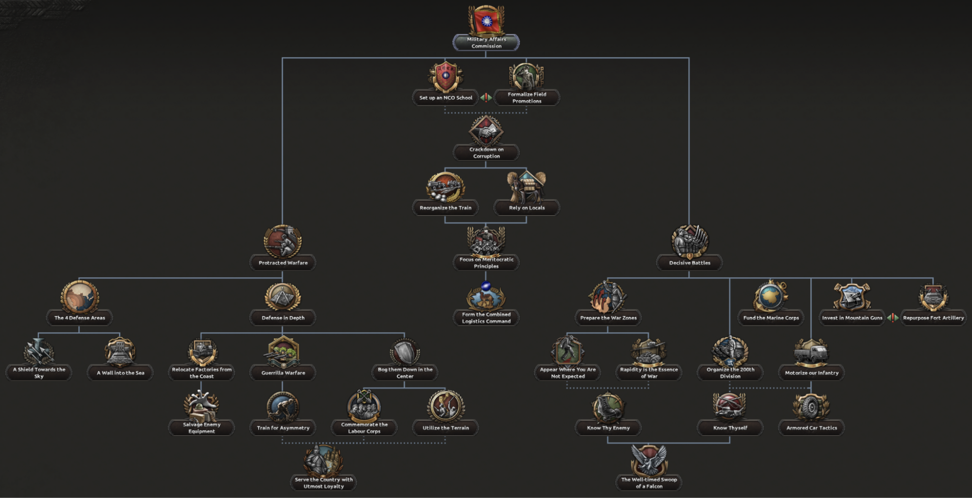 The former was based on the perception that the Japanese had no staying power and the longer the war took, the lower their chance of winning. This path gives you solid bonuses to your defence and the possibility to burn the enemy's supply lines from the rear. You will also be able to focus your defensive efforts in specific states to pin the enemy down where it is the most beneficial to you