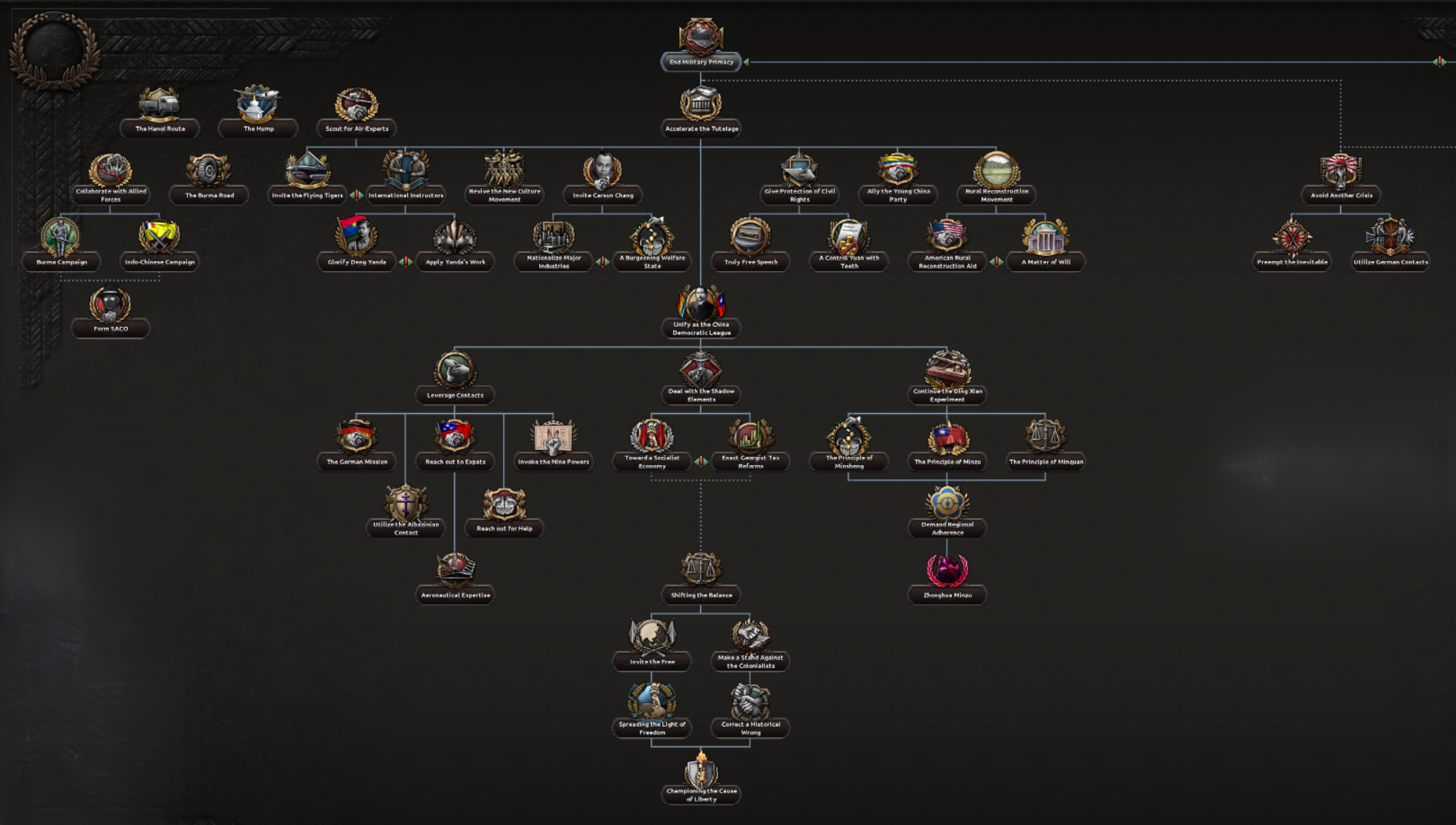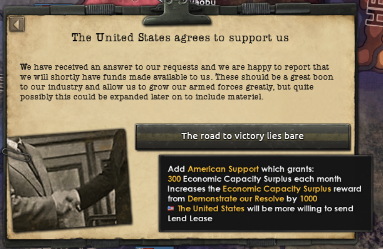 Getting support from expats isn’t going to save China and one place where a lot of people ended up would be the USA. If you’re able to hold out long enough you will be able to request to join the Americans in their faction, bringing them into the war earlier than they did historically.