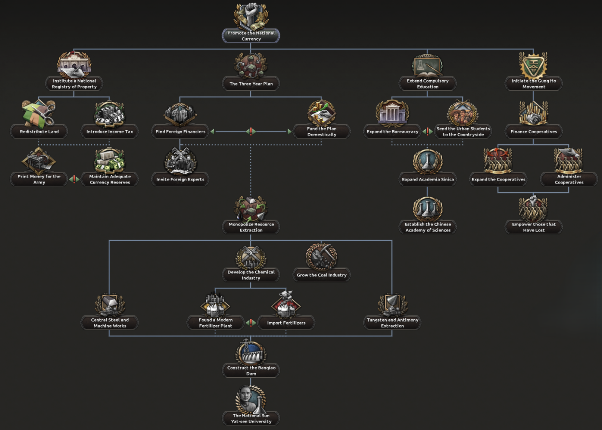 While the Nanjing decade brought a lot of economic and educational progress to the country, it was mostly centred around urban areas. This led to a less dynamic economy and more importantly an opening for the communists to grow their base. In NCNS we wanted to give you the opportunity to solve this issue