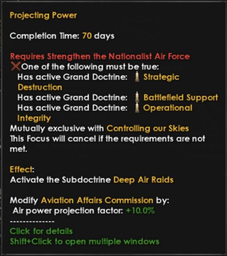 The main choice is if your airforce is going to be shaped into an offensive tool to project power and strike the enemy abroad, or if controlling your own backyard takes precedence. This ties into the changes we’ve done to doctrines of course.