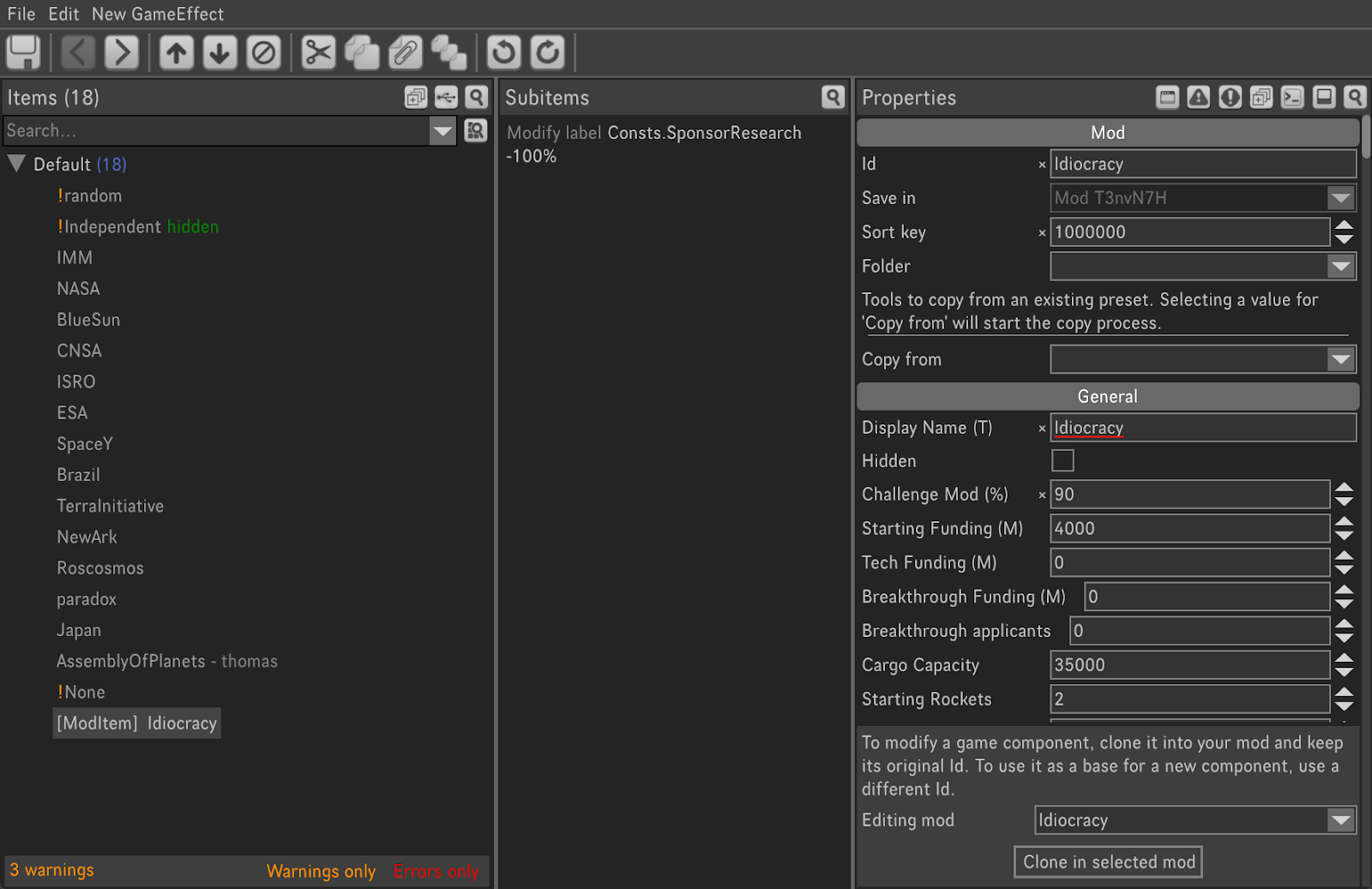 Let me give you an example of this. If you want to make a new Mission Sponsor, you will need to make the relevant mod item. In that mod item UI you can now find the button āOpen in Mission Sponsorsā. If you click that button it will open the OG MissionSponsorPresetEditor where all of the existing Mission Sponsors exist. Besides the actual functionality, this can be a great reference resource as well.