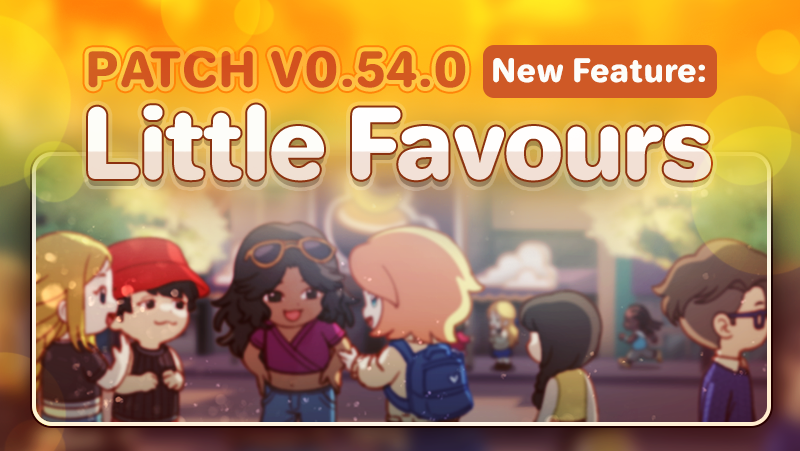 Citizens can now give you quests around the city! We've currently implemented it to 3 quests per day - so look around! Little Favours will appear with a visual cue above the citizen's heads which, when accepted, will show up in a new section on your Quests App. We're still working on developing the citizens so that next few patches will bring even more interaction with them. Stay tuned