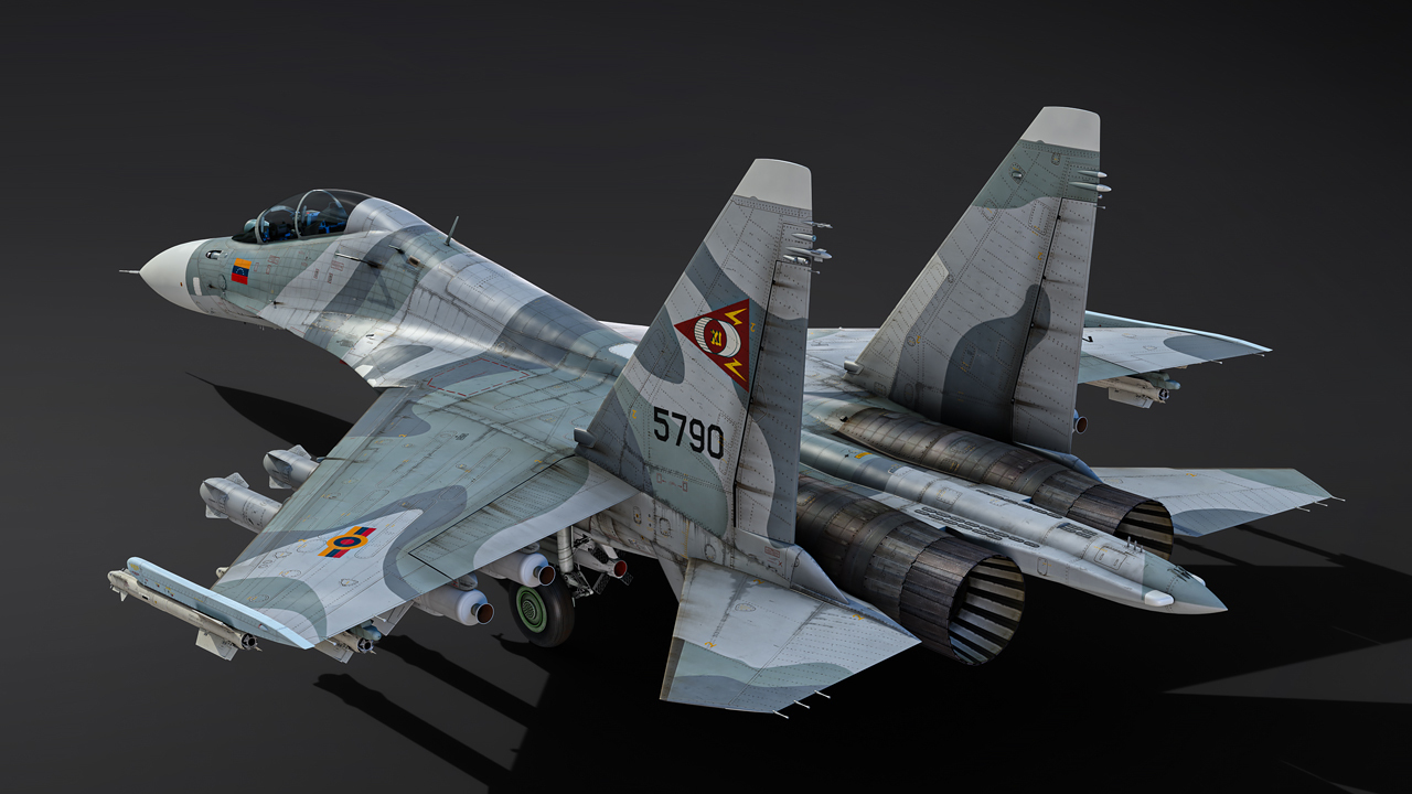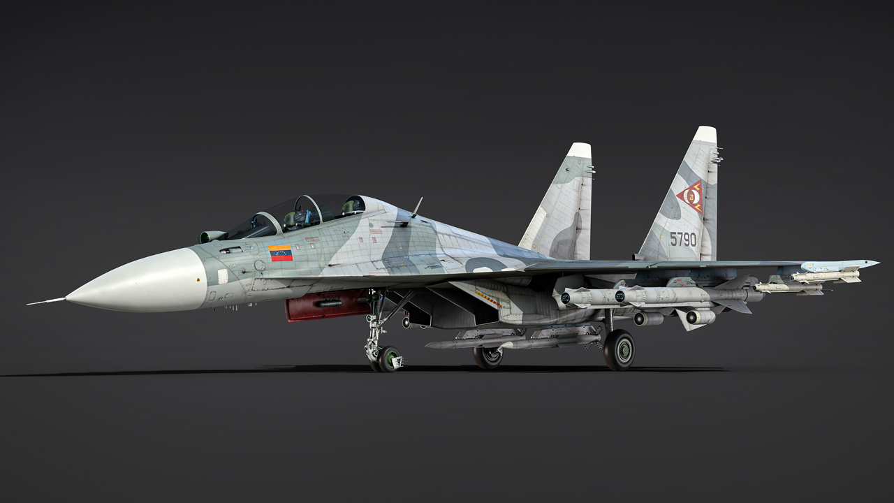 The Venezuelan Su-30MK2 AMV is in many ways similar to the top-tier Sukhoi aircraft available in the Soviet/Russian aviation research tree already. It’s a heavy aircraft with powerful engines, 12 weapon hardpoints, a payload of over 8000 kg, all while being highly maneuverable and capable of reaching speeds exceeding Mach 2 with a combat load. The Su-30MK2 AMV has excellent avionics and equipment too! It features a good radar, a “Rita” voice warning system, a thermal imager and night vision, a helmet-mounted display, an RWR with a target identification and as many as 96 large-caliber countermeasures!