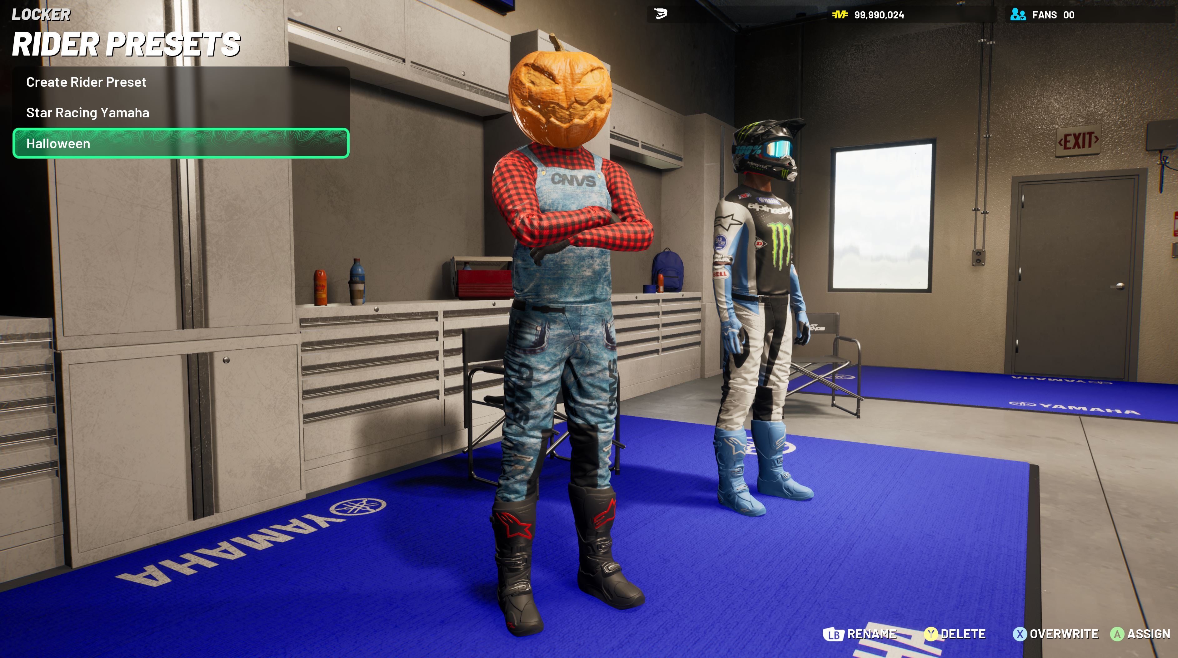 Looking to try on something new to wear in the Locker, but don't want to lose your current setup? Pop into the new Rider Presets menu to save up to 16 of your favorite looks. Each preset stores a unique set of gear, colors, appearance, name, and number.