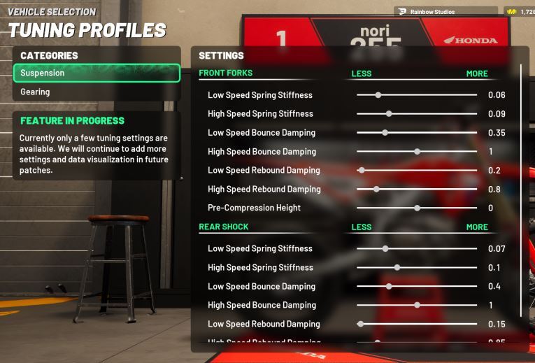Hop onto a Pro Physics MX 450F to test out Gearing and Suspension settings in a completely new, more detailed Tuning system.