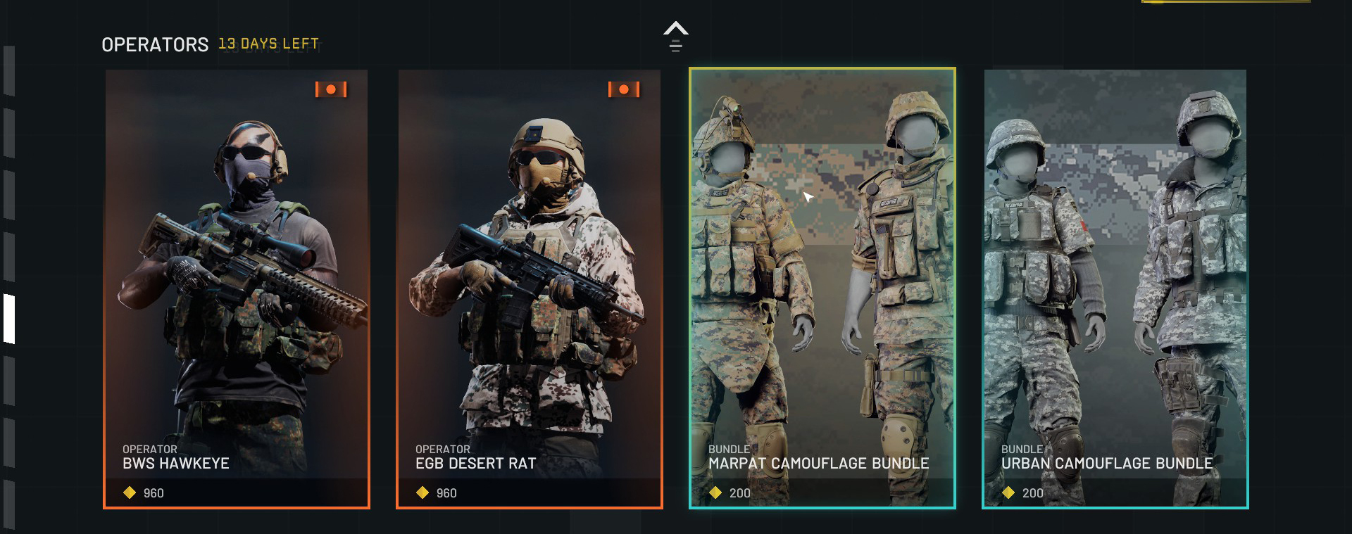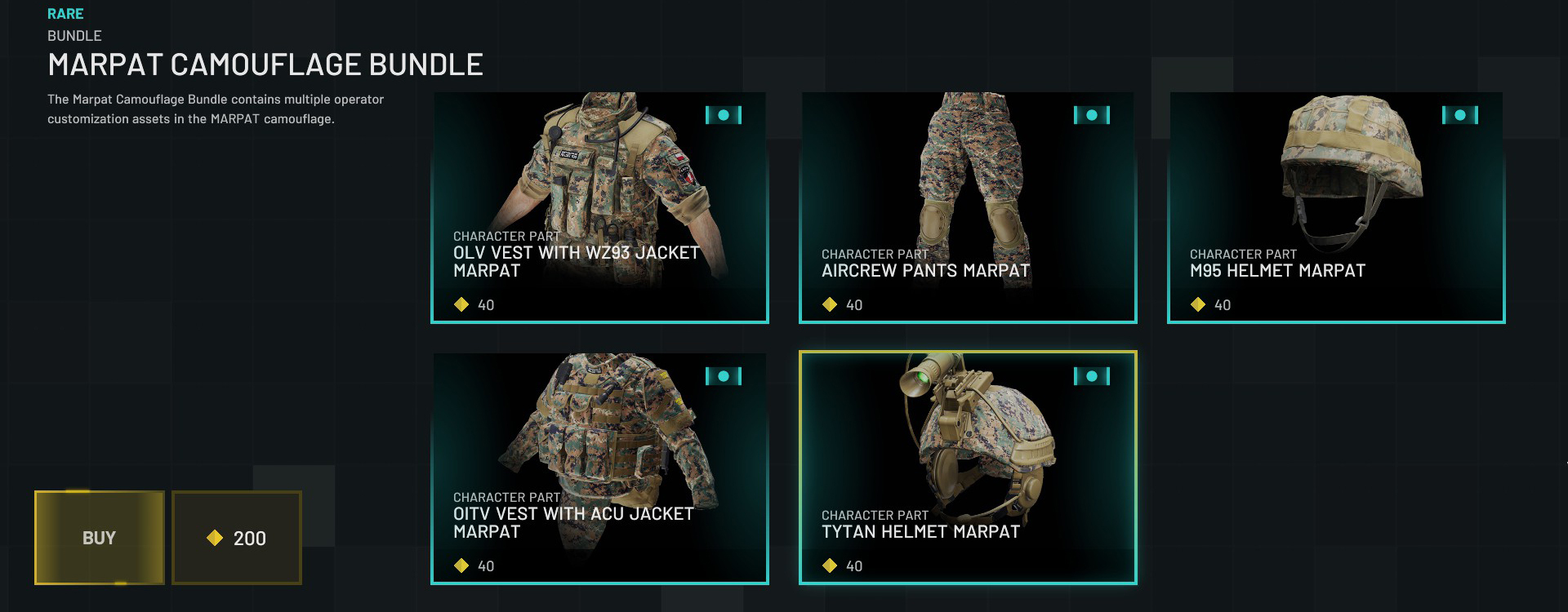 In our game, this camouflage is one of the main ones used by Operators. It can also be purchased as part of a bundle containing several items featuring this camouflage. Currently, such a bundle is available in the game store for 200 UNC. You can buy a set consisting of: