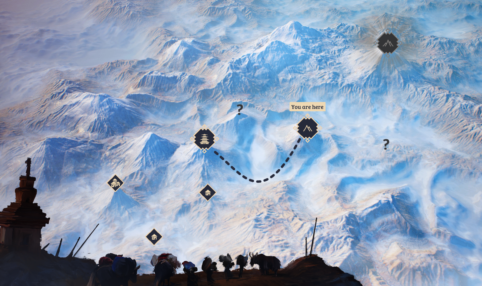 Sandbox - you travel from mountain to mountain, establishing new settlements but also returning to ones you’ve already developed.