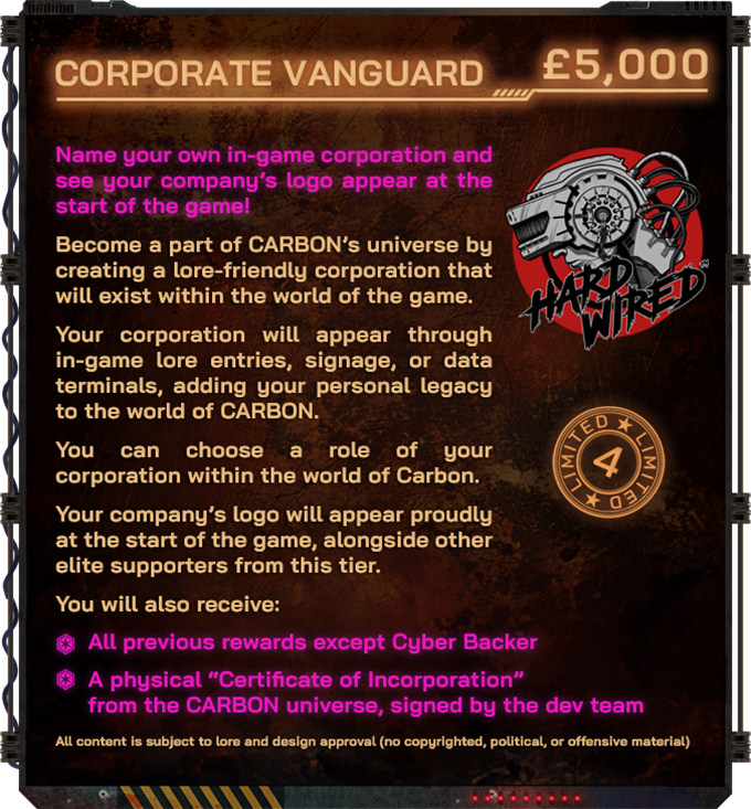 We didn’t want to settle for slapping logos on a loading screen. That’s too clean. Too sterile. Instead, we’re giving you real power - the chance to forge your own megacorp inside the world of CARBON.