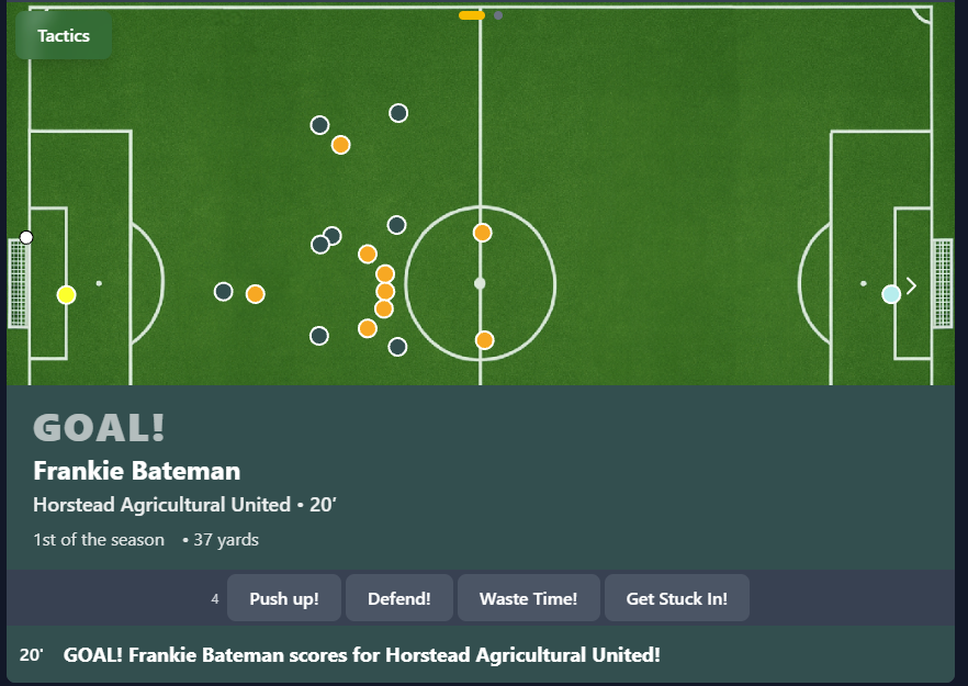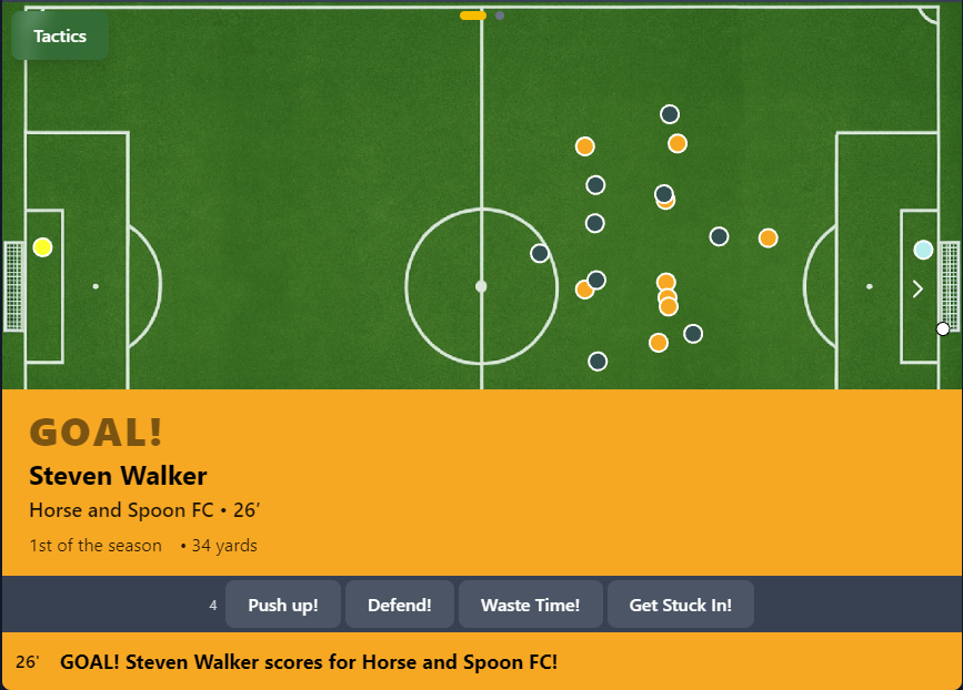 Beyond that we have a new Goal announcement in the ME, we have more balanced games and there's been the introduction of shifting momentum in the background. Additionally you have a new Tactical Instruction feature that allows you to alter the way your team is playing from the sidelines beyond shouting for them to Push Up or Get Stuck In.