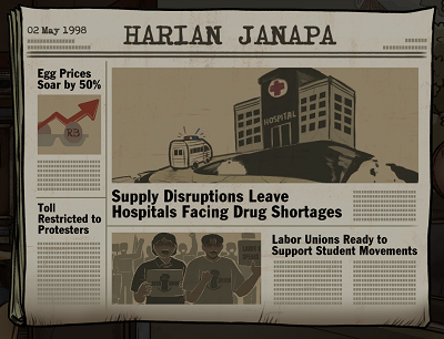 GameChanger was fully aware of this. Honestly, there wasn’t much we could do to completely address it, because our main priority was to tell the story of Dewi, Heru, and Sinta the way we wanted to. However, that doesn’t mean we didn’t make small efforts to help 1998: The Toll Keeper Story feel more “international.” One small adjustment we made? Instead of focusing on rice — the staple food of Indonesians — our discussions about rising food prices centered on eggs, a more universally relatable item.