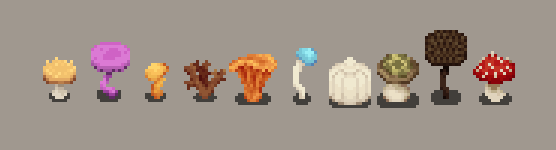 I've been working on the main v0.92 update, which includes the underground area. I've created some mushrooms that'll be farmed down there, and I've been trying to figure out the visuals for that area.
