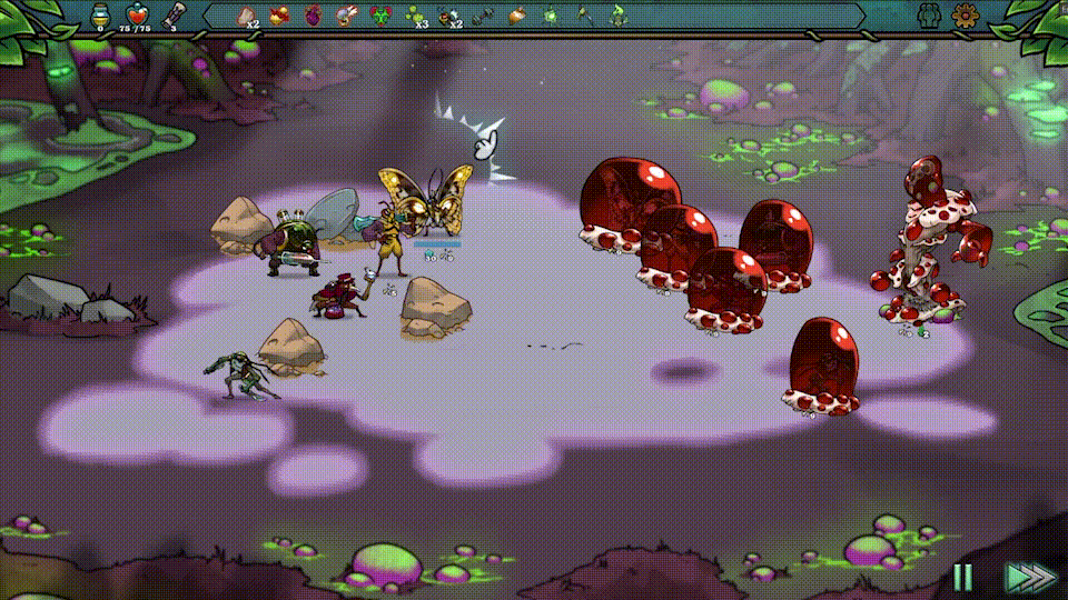 On the other hand, as winning a fight meant earning money depending on your unit's health at the end of the fight, it lead to a weird snowballing effect that we felt was not healthy for the game in the long run. The better you do in a fight the more nectar you get, the more nectar you get the more items and trinkets you can buy, the more items you can buy the better you do in a fight...etc.