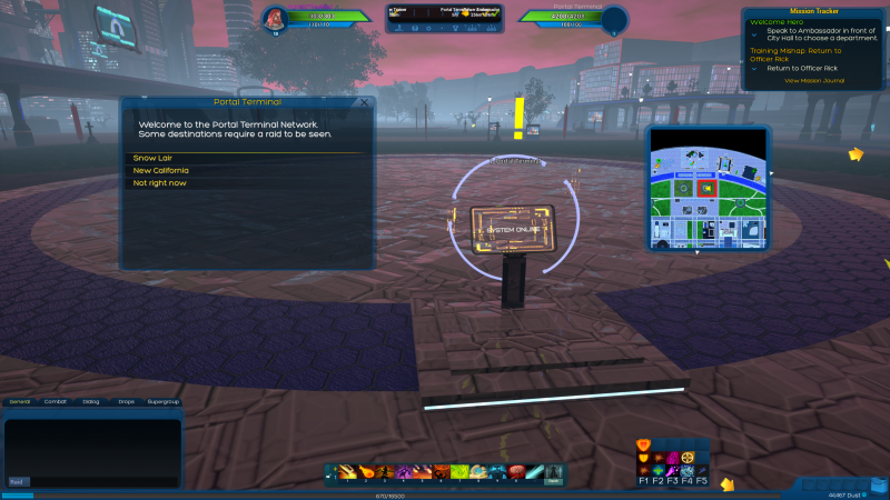 You can access the New California world from the same terminal that you use to open up the Snow Lair, between City Hall and the Hero Statues.