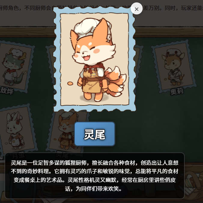 最后登场的是足智多谋的灵尾,他的存在已经不单是单纯的烹饪,机灵的他以成为‘料理王’为自己远大志向!