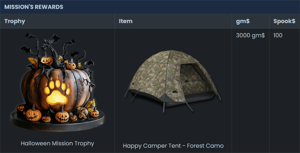 Participate for the prizes, the trophies, and the glory! The hunter with the most Spook$ at the end of November 5th will win a very generous first prize!