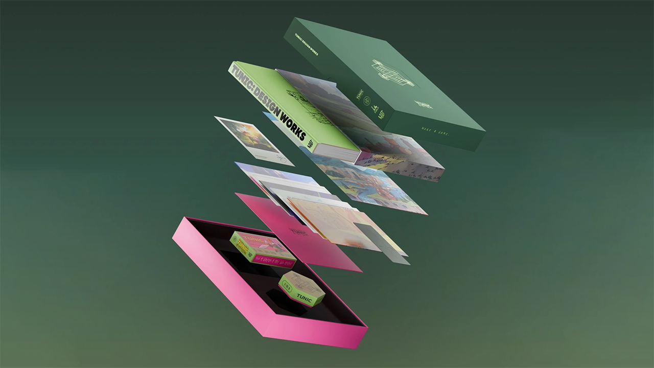 The Deluxe Edition comes in a beautiful slipcase designed by the artist Ma-ko who adorned Tunic's in-game manual, and a presentation box that reflects the colours of Tunic's verdant environments and plucky protagonist π³