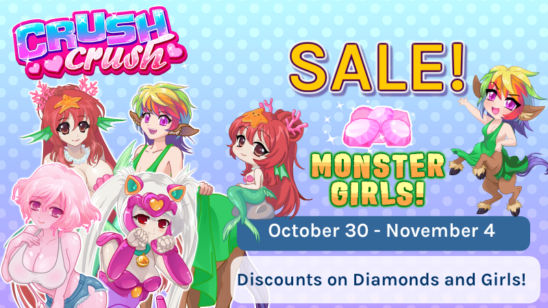 We’re offering zero tricks, only treats with this Halloween sale! From October 30th to November 4th, enjoy 10% off Diamonds and 10% off the Limited Time Event Girls in the Store! That includes the thematically-appropriate Monster Girl Bundles, just in case you needed a suggestion of who to unlock. But don’t let us sway you too much! There are lots of pretty waifus to choose from! And unlike Halloween candy, these sweeties won’t give you cavities, so you can have as many as you like.