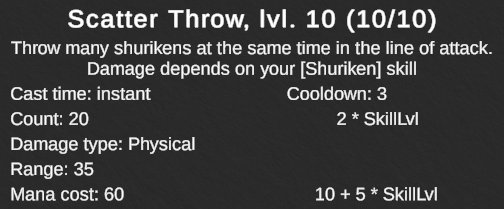 - New active skill for ranged tree - \[Scatter Throw]. Useful to apply multiple dots at the same time