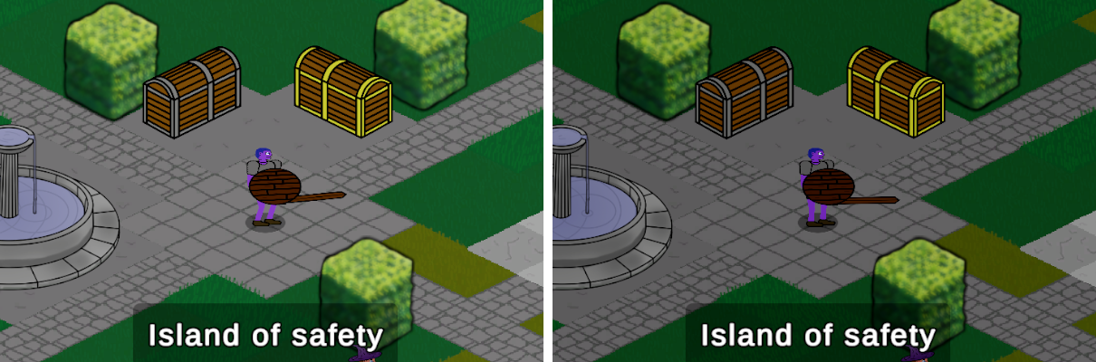 - Some post-processing was added: a bit more contrast and a little darker game colors