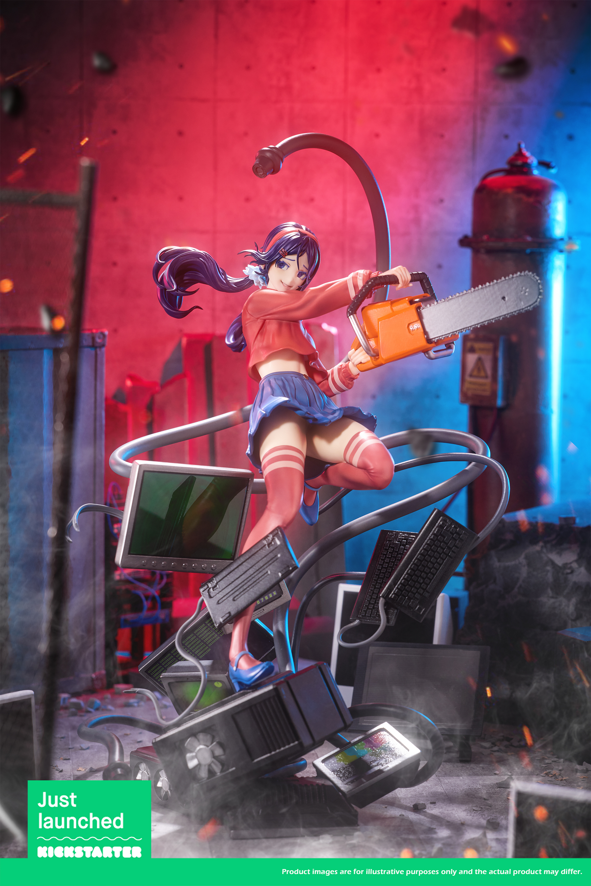 [/carousel]1/6 scale Mita totting a chainsaw and ready for some action (all to show her wild and enigmatic side)! Includes a 3D Holographic Mita Glass Display that makes it look as if Mita could come alive at any second!
