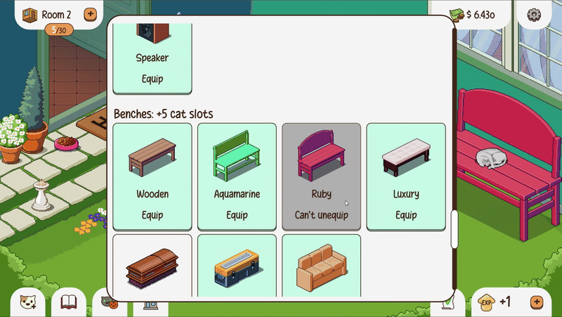 Just remember that you need to move cats away from towers and benches to be able to unequip them.