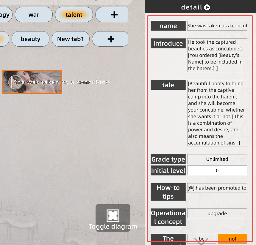 You can configure a view function; e.g. if \[Variable] = number of beauties, you can link a beauty gallery in Details.