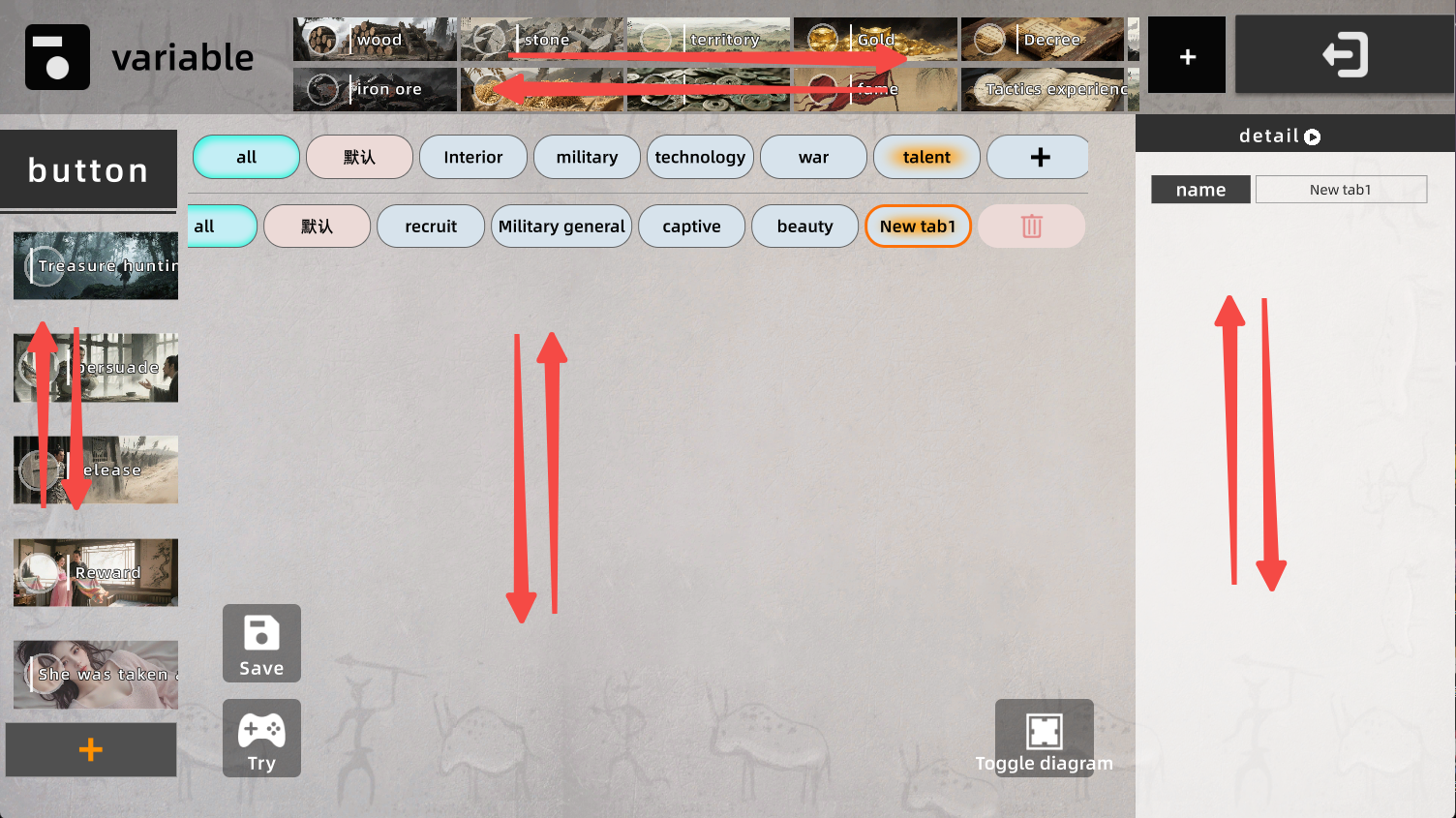 \[Create Variable]: Click the \[+] to add a \[Variable] — key resources in the world.