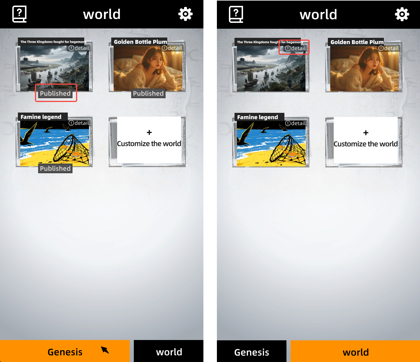 Click \[Publish] to publish the world; it will then appear in the \[Worlds] tab for everyone to play.